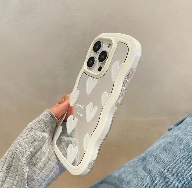 白ハート ミラー式 iPhoneケース