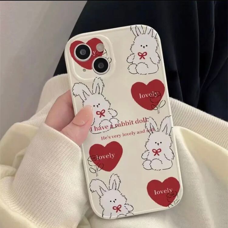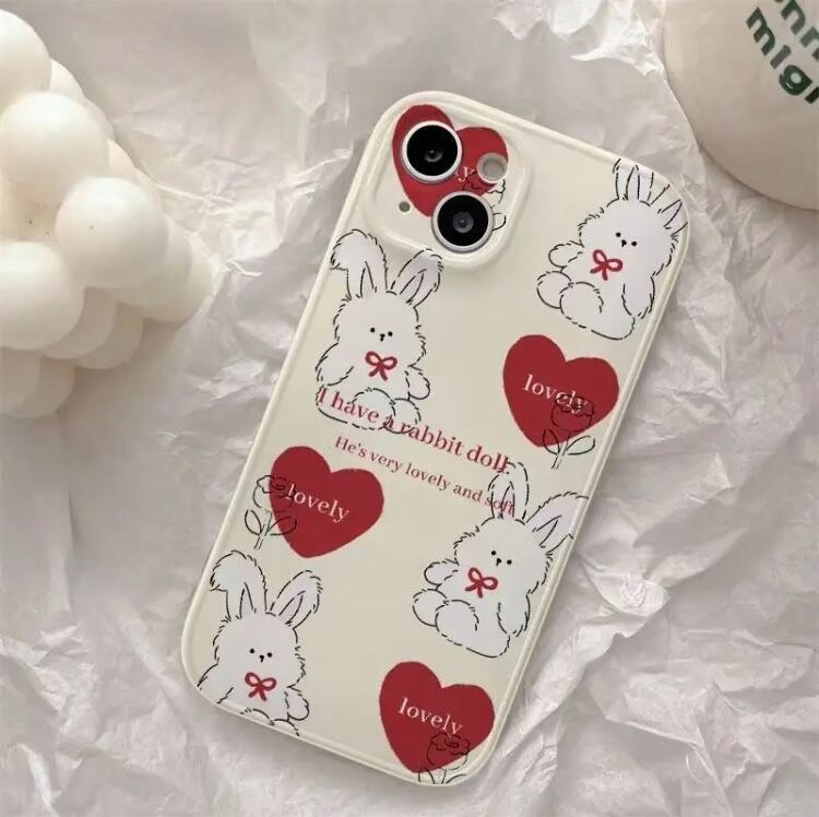モフモフうさぎ ハート iPhoneケース